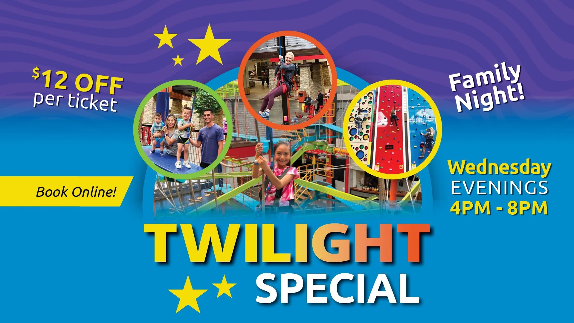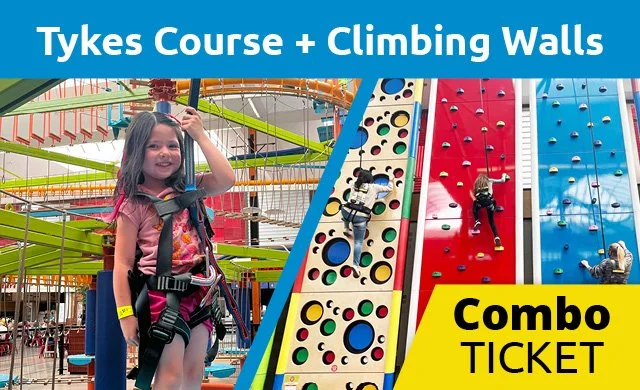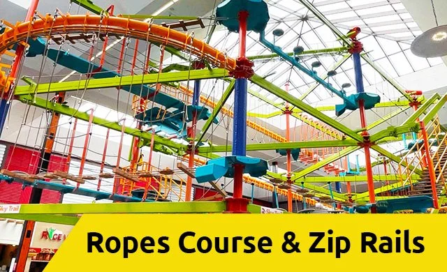 Book online to save 10% on admission! Looking for indoor activities in Santa Fe, New Mexico? Visit New Mexico’s largest indoor ropes course at the Santa Fe Place Mall! Experience the bi-level Sky Trail® ropes course with Sky Rail® zip rail at heights up to 35 feet, or the Sky Tykes® course for small children, just 3 feet off the ground. Add Clip ‘n Climb® walls for more climbing fun.