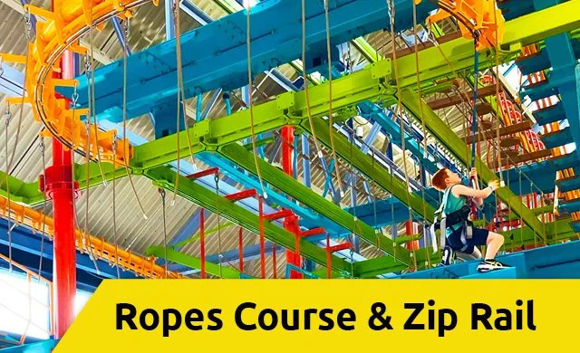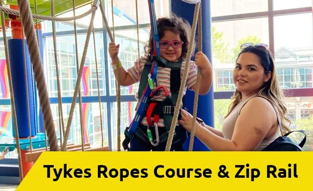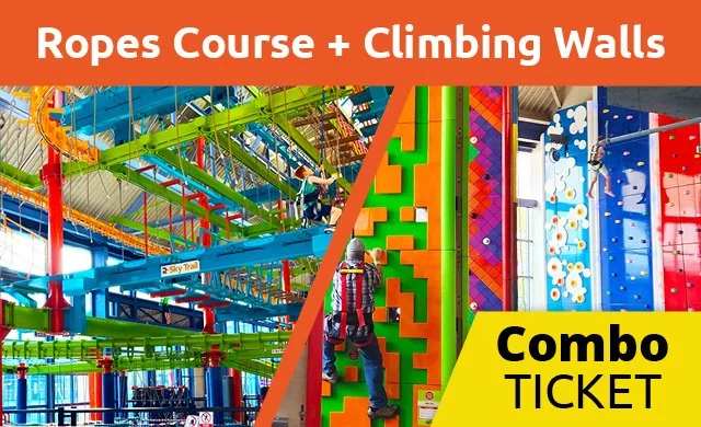 Book online to save 10% on admission! Looking for indoor activities in San Antonio, TX? Visit the tallest indoor ropes course at the Shops at Rivercenter! Experience the bi-level Sky Trail® ropes course with Sky Rail® zip rail at heights up to 35 feet, or the Sky Tykes® course for small children, just 3 feet off the ground. Add Clip ‘n Climb® walls for more climbing fun.